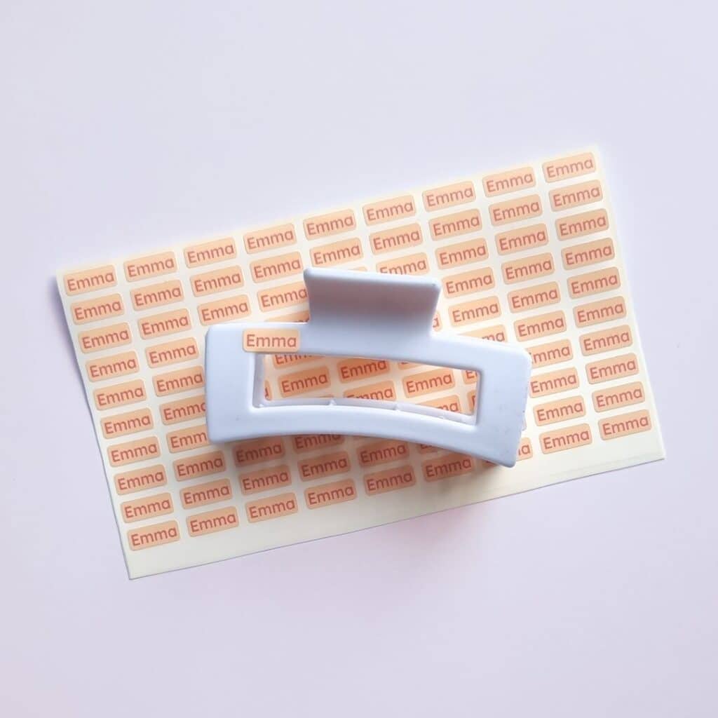 Navnelappene fra Lappeliten er selvklebende og enkle å feste på det meste du ønsker å sette navn på, som for eksempel klær, matbokser i plast, drikkeflasker av stål/metall og glass.